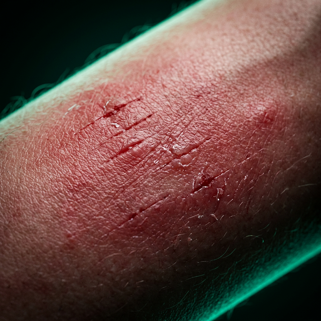 Esa rojez gigante en bloque ardiente, los puntos chiquititos asquerosos lle...